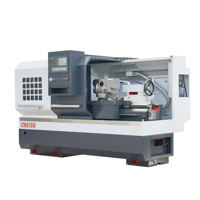 CK6150型數控車床是一種高效率數控車床,結構合理,制造精良,配置先進,造型美觀。機床通過數控系統自動控制,可對加工范圍內的各種內孔、外圓、圓錐面、圓弧面及螺紋進行加工,特別適用于中小批量的軸類、盤類零件的粗精加工。具有自動化程度高、編程簡單、精度高等優點。與國內同類型機床相比,具有以下特點:床身采用樹脂砂造型,導軌經過超音頻淬火和精密磨削,剛性好,精度高。