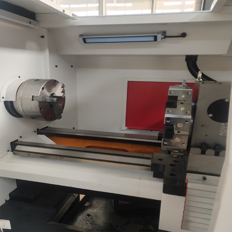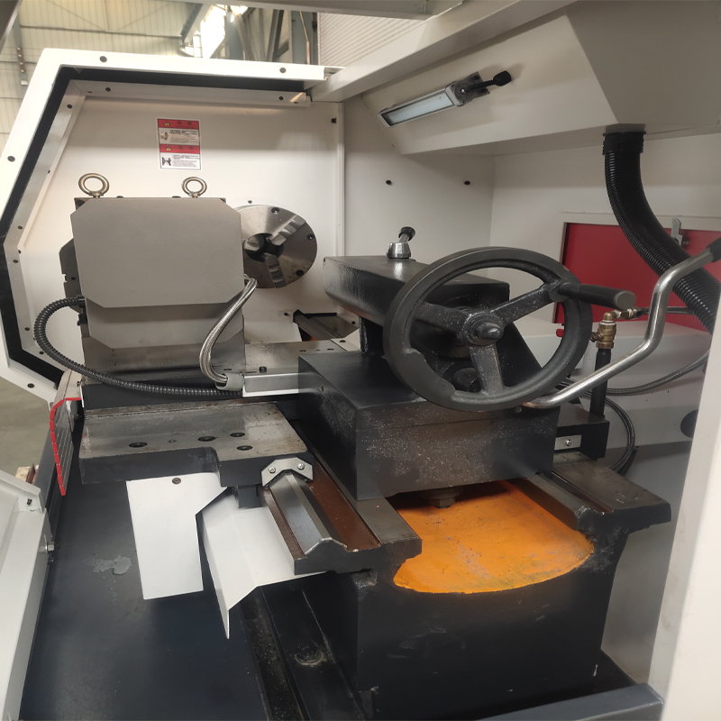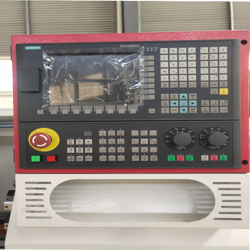 3.數控系統選用國產名牌 GSK928 系統,進給采用大扭矩交流伺服驅動,Z 軸、X 軸采用電機與絲杠直聯,具有精度高等優點。機床防護采用雙拉門防護,外觀簡潔大方。
