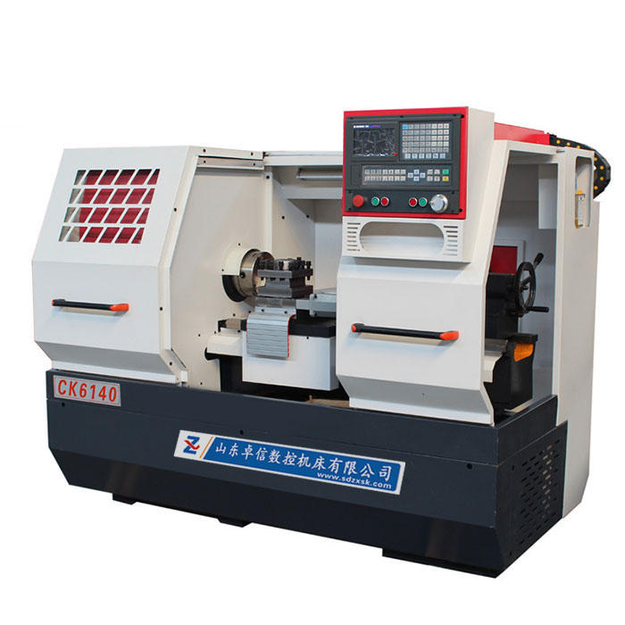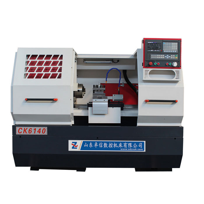 CK6140 型數控車床是一種高效率數控車床,結構合理,制造精良,配置先進,造型美觀。機床通過數控系統自動控制,可對加工范圍內的各種內孔、外圓、圓錐面、圓弧面及螺紋進行加工,特別適用于中小批量的軸類、盤類零件的粗精加工。具有自動化程度高、編程簡單、精度高等優點。與國內同類型機床相比,具有以下特點:床身采用樹脂砂造型,導軌經過超音頻淬火和精密磨削,剛性好,精度高。